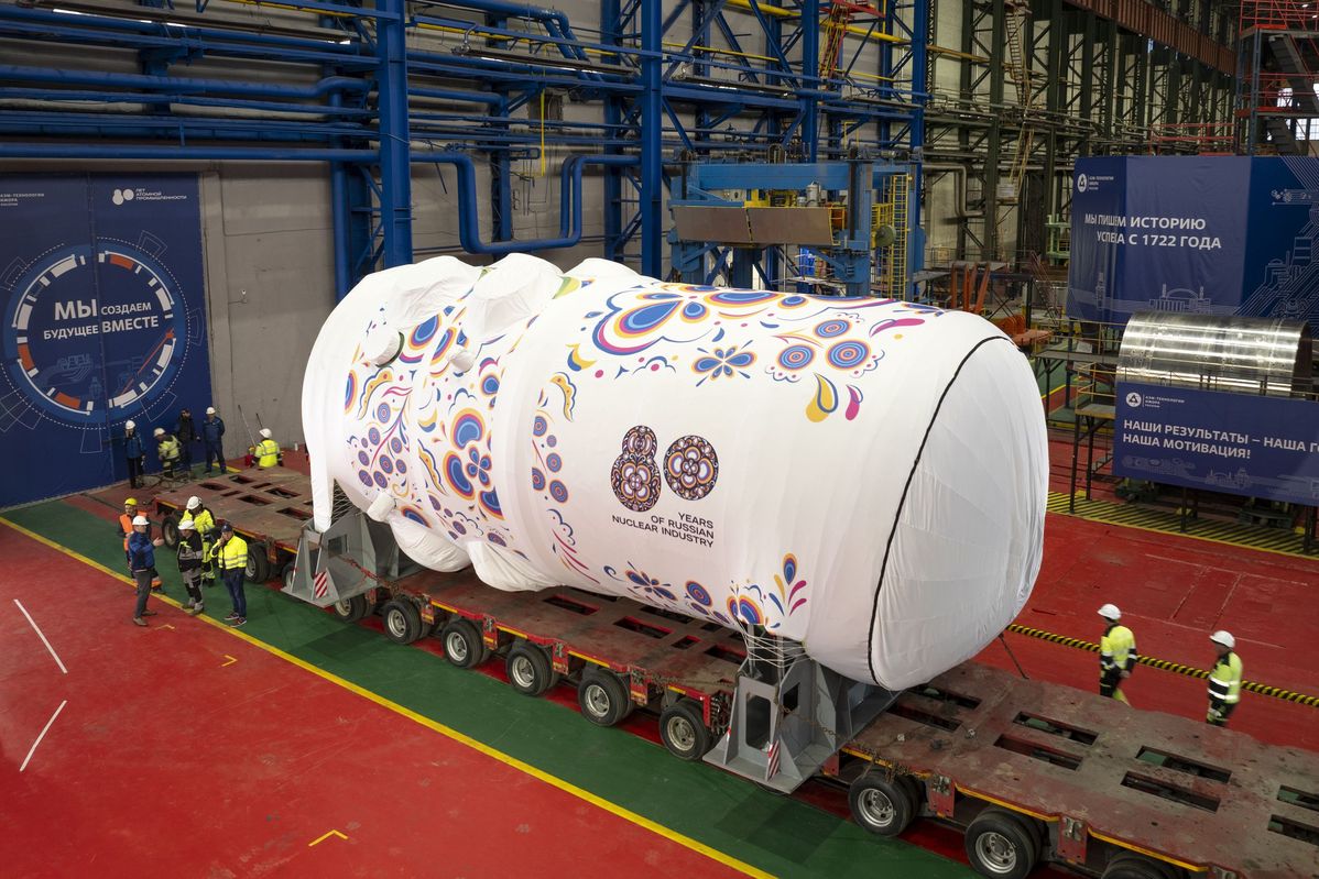 Синхронная отгрузка двух атомных реакторов из разных городов была проведена впервые в истории российской атомной промышленности. Атомные реакторы ВВЭР-1200 новейшего поколения 3+ для АЭС в Египте и Турции машиностроители отправили на стройплощадки в чехлах, украшенных орнаментами, сочетающими русские народные мотивы и визуализацию современных представлений ученых о квантово-механической модели атома.